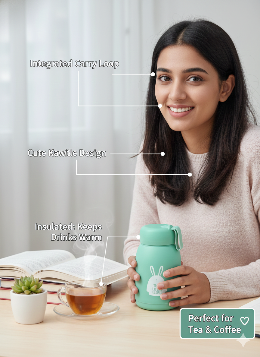 Ready to start your day with cuteness? Grab this adorable Rabbit Mini Thermal Bottle today!