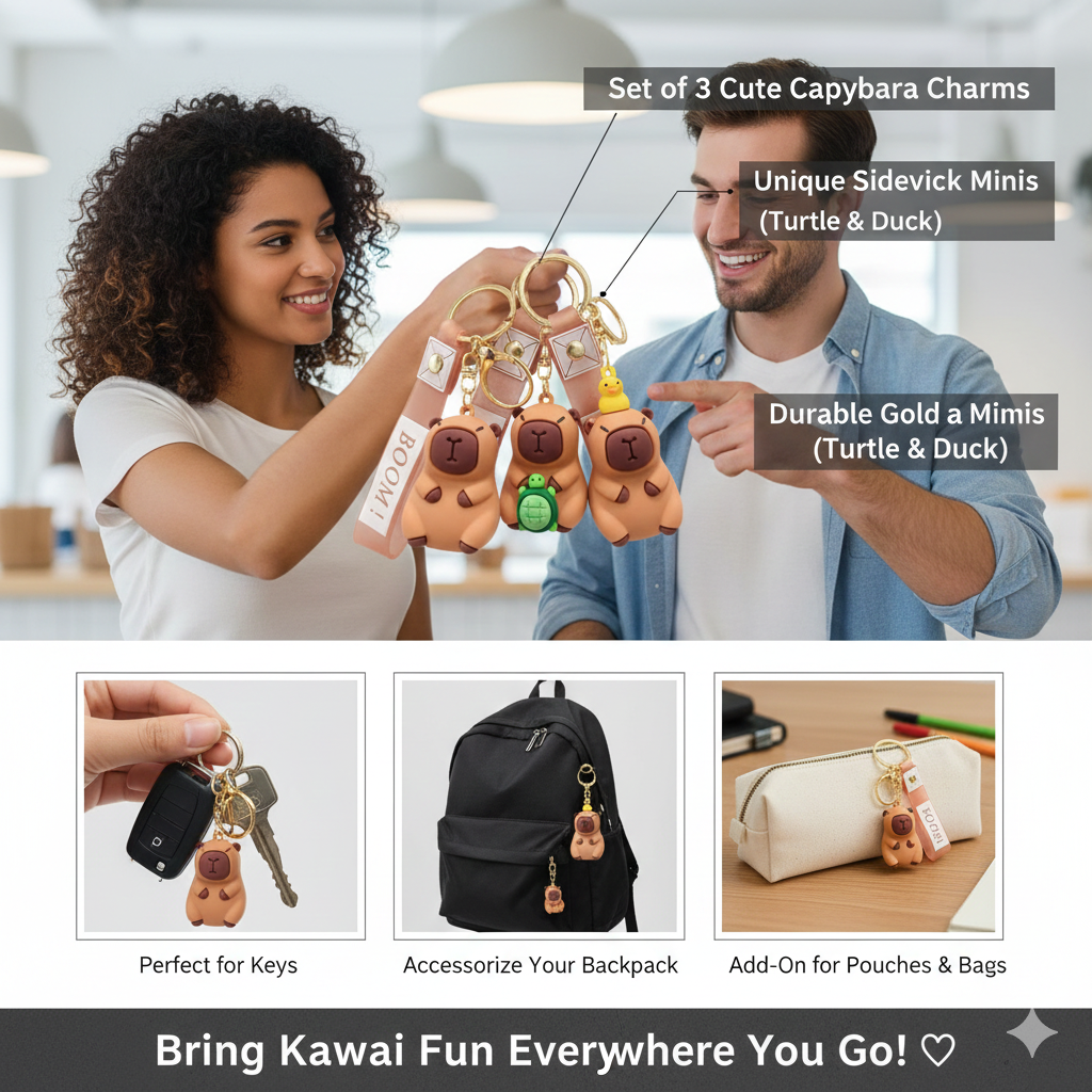 🐹 BOOM! Capybara Squad Keychain - Cute & Grumpy Charms 🐢🐥