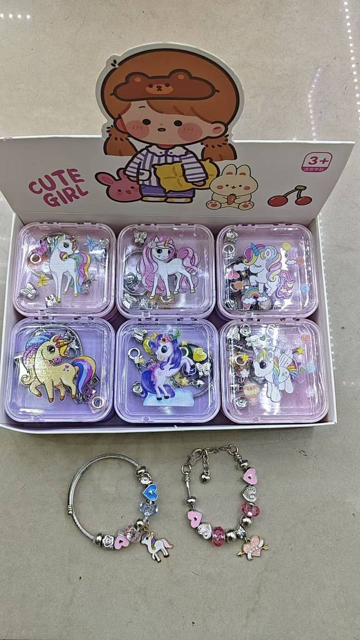 Contents: Includes metal bracelets, assorted metal and colored beads, and unique Unicorn Charms.