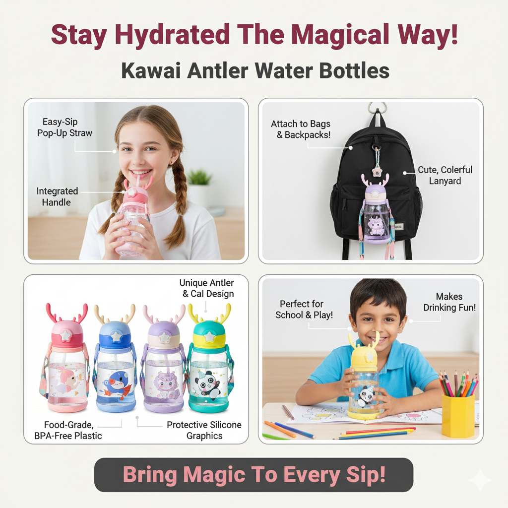 Make hydration fun and magical with this adorable Antler Character Sipper Bottle! Featuring playful deer horns and charming cartoon decals, this bottle is perfect for encouraging little ones to drink more water, whether they're at school, the park, or on a playdate.
