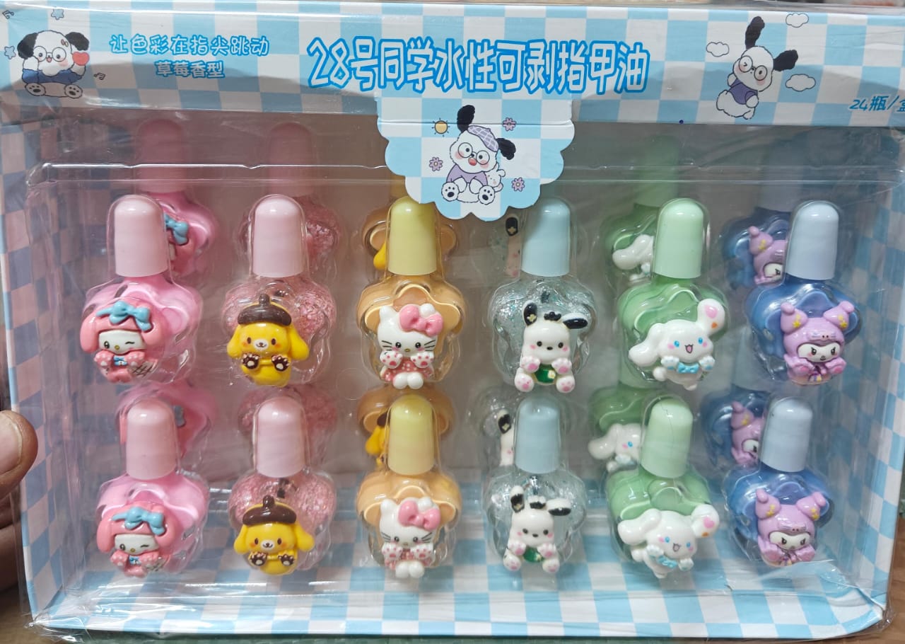 Give the gift of creative fun with this adorable set ofĀ water-based, peel-off nail polishes!Ā Perfect for young children, teens, and Sanrio-inspired character fans, this set offers vibrant colors in cute collectible bottles that are safe and easy to use.