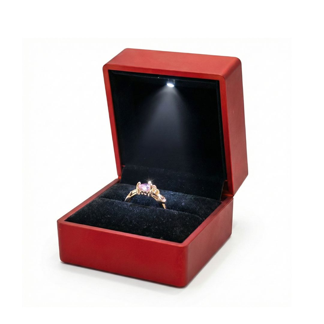 The built-in LED light automatically illuminates when opened, drawing instant attention to the ring and enhancing its sparkle. Whether you’re gifting a ring or storing a precious piece, this box ensures it’s showcased beautifully every time.