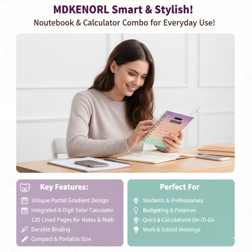 Combine stunning style with smart functionality with our Aesthetic Efficiency Calculator Notebook! This is the perfect 2-in-1 tool for students, budgeters, and creatives who need quick access to calculations without compromising their desk aesthetic.
